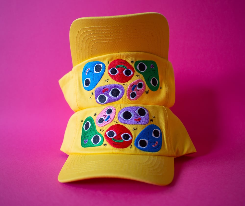 Make someone in your life a happy chap with this embroidered yellow cotton twill kids hat.
