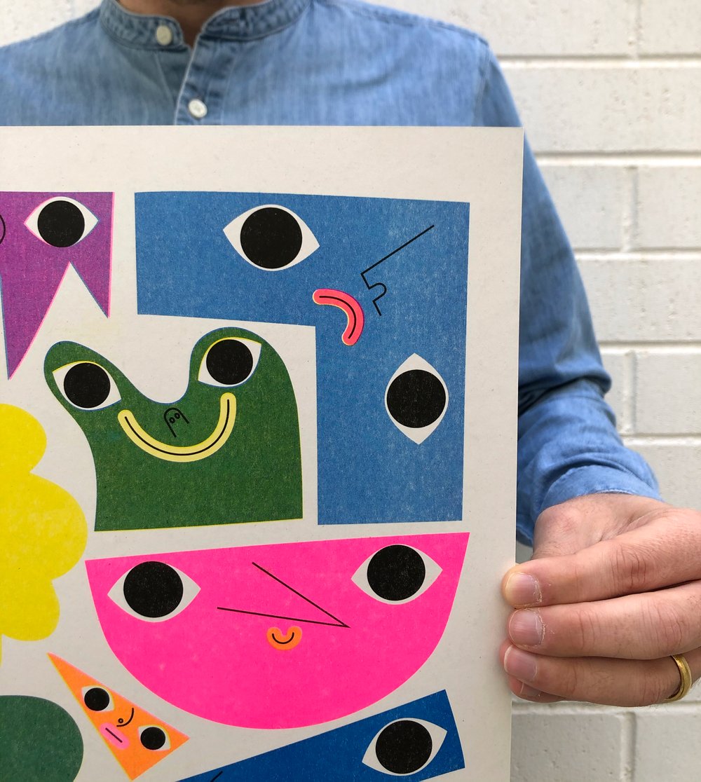 Fun, colourful and bright shapey bois to brighten any room. Riso printed locally by the wonderful Helio Press.